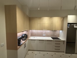 Neben dem reinen Zuschnitt fertigen wir Einbauküchen, Schränke, Regalsysteme und individuelle Möbel für private und gewerbliche Räume. Dabei setzen wir auf hochwertige Plattenmaterialien, langlebige Beschläge und eine präzise handwerkliche Umsetzung.